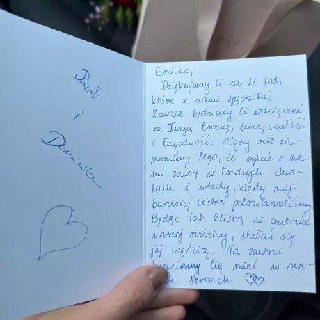 Na co dzień opiekuje się również osobą z niepełnosprawnością, co nauczyło mnie ogromnej cierpliwości, uważności i empatii. Bez problemu radzę sobie w trudnych i nie do przewidzenia sytuacjach.