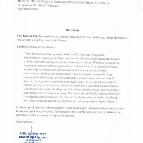 Posiadam także referencje od mamy tej dziewczynki:)