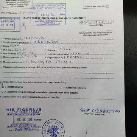 Dzień dobry. Mam na imię Olga. Mam 35 lat. Pochodzę z Ukrainy. Mam 17-letnią córkę. Mówię i rozumiem po polsku. Jestem osobą odpowiedzialną. Potrafię budować relacje z dziećmi. Dzieci bardzo mnie kochają.